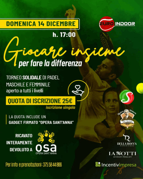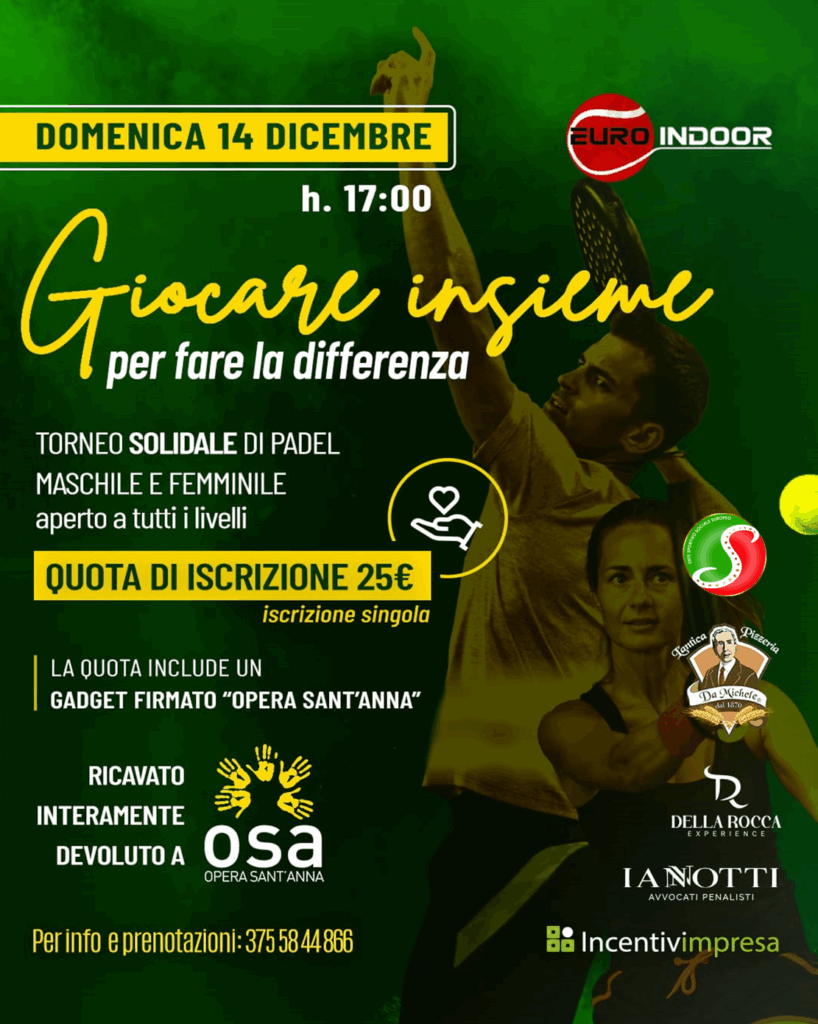 Il torneo solidale di padel per sostenere la mensa dei poveri dell’Opera Sant’Anna Caserta – 14 dicembre 2025Una giornata di sport, solidarietà e comunità:
