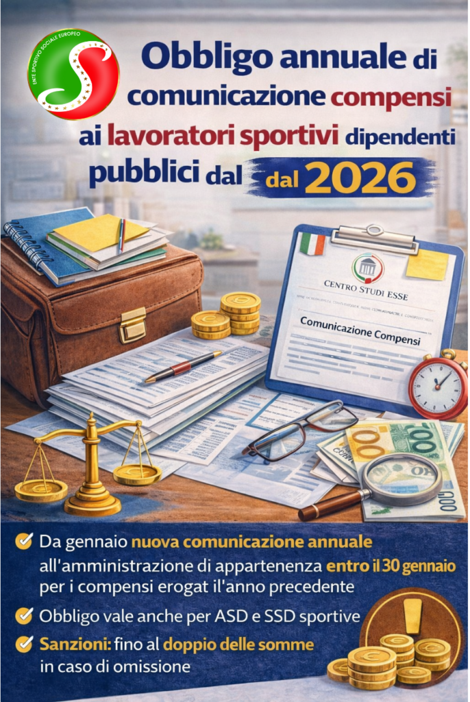 Dal 2026 torna l’obbligo di comunicazione annuale dei compensi erogati ai lavoratori sportivi che sono dipendenti della Pubblica Amministrazione, come previsto dall’articolo 53 del
