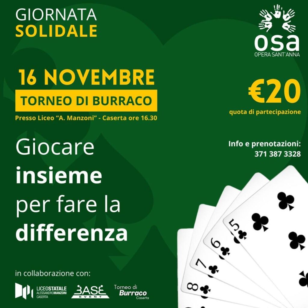 A Caserta il Burraco Solidale dell’Opera Sant’Anna in collaborazione con il Liceo Manzoni