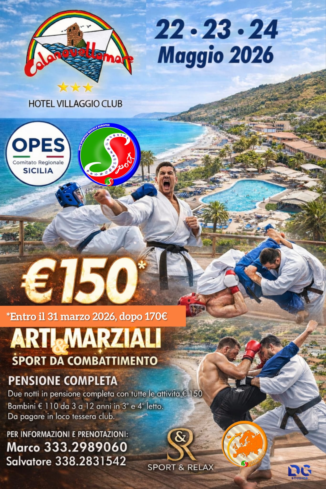 Dal 22 al 24 maggio 2026 la splendida cornice di Calanovella Mare, in provincia di Messina, ospiterà un importante appuntamento dedicato al mondo delle arti marziali e degli sport da combattimento, un evento che unirà formazione tecnica, confronto tra discipline e momenti di condivisione tra atleti e maestri provenienti da diverse realtà sportive.