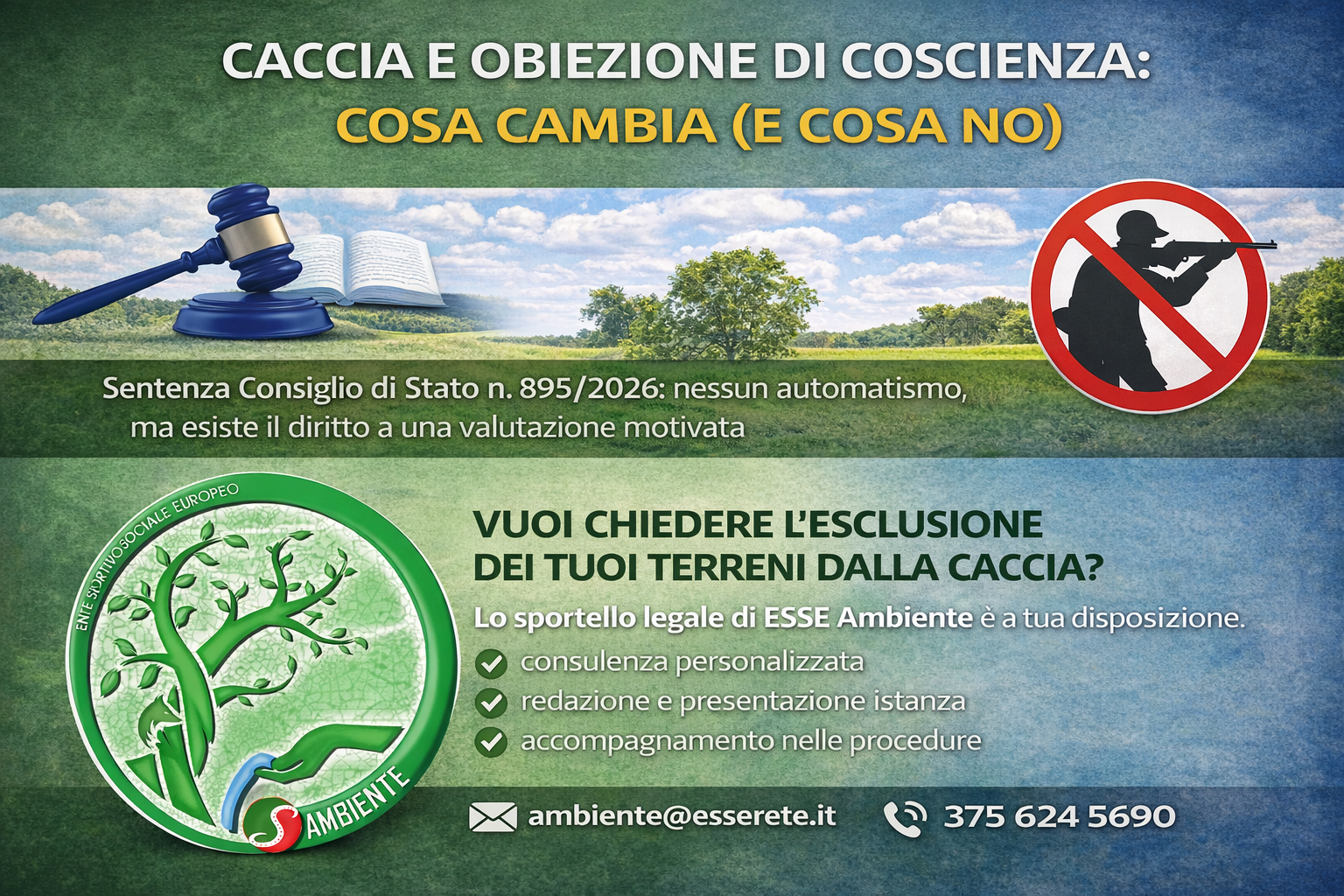 Chi intende far valere la propria obiezione di coscienza può rivolgersi allo Sportello Legale ESSE Ambiente per ricevere supporto tecnico e legale qualificato.
