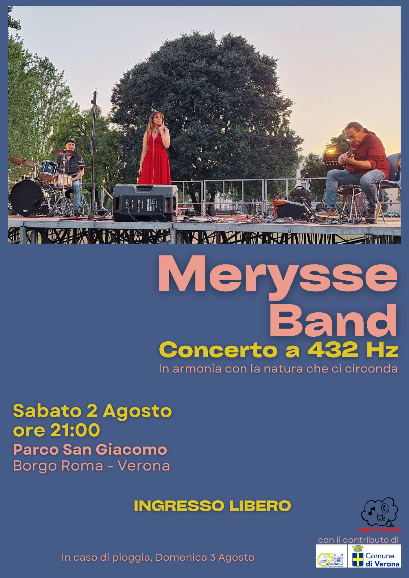Sul palco, Merysse, cantautrice, performer e imprenditrice culturale, con la sua band: Michele Bertasi alla chitarra, Barbara Dal Frà alla batteria e Lelio Maira al basso (e anche alla batteria in alcuni momenti del concerto).